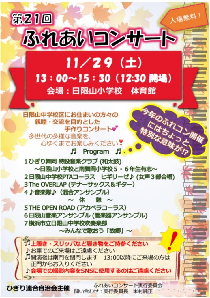 第21回ふれあいコンサートが日限山小学校で開催されます。
