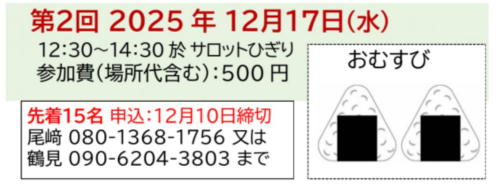 開催場所 : 日限山3-38-31サロットひぎり (車 Pなし)