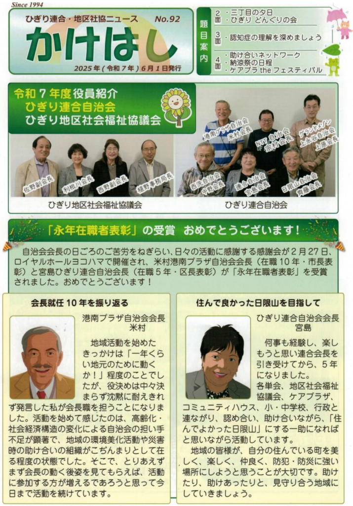 | ひぎり連合・地区社協ニュース「かけはし」 発行 |