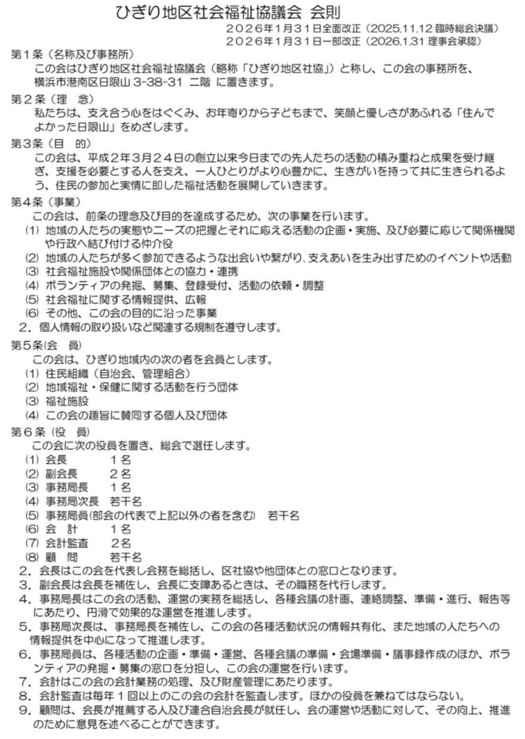 ●改正後のひぎり地区社協 会則・運用細則(2026.1.31施行)