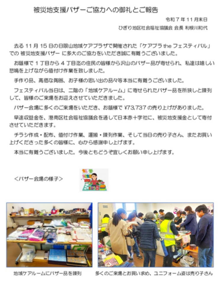 ケアプラtheフェスティバルでのバザーへのご協力への御礼と結果のご報告