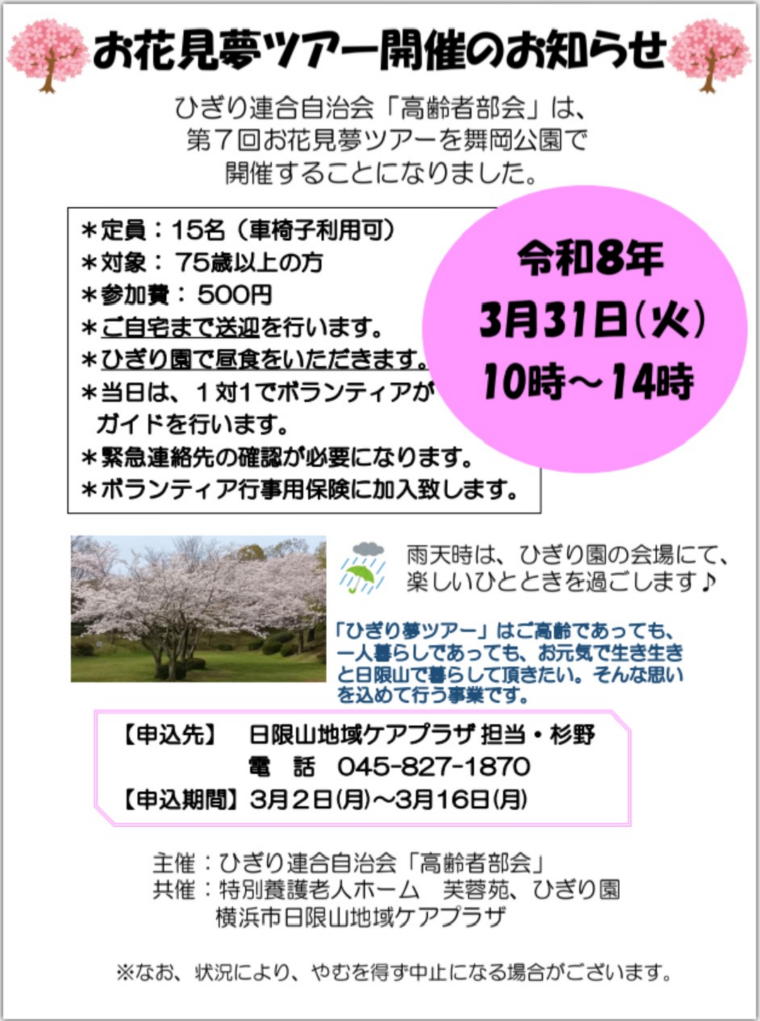 2026年3月31日お花見夢ツアーを開催します。