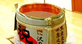 寄付された祝酒を鏡開き