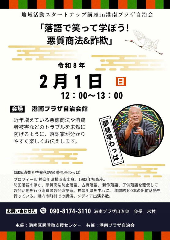 2026.2.1「落語で笑って学ぼう!悪質商法&詐欺」が開催されました。