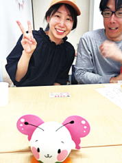 ひぎまる考案者と記念撮影 ひぎまるマスコット