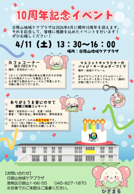 日限山地域ケアプラザ10周年記念イベントが開催(2026.4.11)されました。